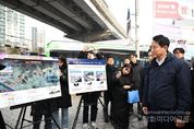 시민행정신문 강갑수 기자 | 오세훈 서울시장은 15일 오후 2시 지난달 발표한 '강북횡단 지하도시고속도로 건설사업‘ 대상지인 홍은사거리 유진상가 인근 내부순환로 고가차도 현장을 방문해 사업추진 방향을 점검했다. ‘강북횡단 지하도시고속도로’는 성산IC~신내IC 내부순환로와 북부간선도로 약 22km 고가를 철거하고 왕복 6차로 지하도로를 신설하는 대규모 사업으로, 2030년 착공해 2037년 완공을 목표로 추진된다. 오 시장이 방문한 유진상가는 1970년에 건설된 주상복합으로, 1994년 내부순환로가 건물과 인접해 건설되면서 소음과 매연으로 인해 주거와 상권이 동반 쇠퇴되어 왔다. 또한 인근 지역은 30년 이상 노후화한 건축물이 약 84%로 주민 안전을 위해 개발이 시급한 곳 중 하나로 꼽힌다. 특히 하천부지 위에 건물이 있는 특수한 형태로, 사업성이 없어 번번이 개발이 무산됐으나 서울시의 ‘역세권 활성화 사업’을 통해 용적률을 높여 사업성을 확보, 올해 상반기 정비계획통합심의와 하반기 사업시행인가를 앞두고 있다. 이날 오 시장은 유진상가와 홍은사거리 일대를 차례로 방문해 도시환경을 저해하고 지역발전의