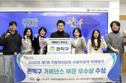 시민행정신문 강갑수 기자 | 관악구가 ‘제7회 지방자치단체 사회적경제 정책평가’에서 ‘거버넌스 부문 우수상’을 수상하는 쾌거를 이루었다. 해당 평가는 지방자치단체 사회적경제 정책의 수립 및 집행에 대한 평가를 통해 다양한 이해관계자들의 사회적경제 정책에 대한 이해도를 높이고, 더 발전된 정책 수립과 집행 체계를 마련하는 것을 목적으로 한다. 평가는 고용노동부, 사회적경제활성화전국네트워크, 전국 사회연대경제 지방정부협의회에서 공동 주최하고, 한국사회적기업진흥원, (사)사회적경제활성화지원센터에서 후원한다. 이번 평가는 전국 17개 광역자치단체 및 226개 기초지방자치단체를 대상으로 이뤄졌다. 선정은 ▲정책 기반 정비 ▲사회적경제 지원 수준 ▲사회적경제 정책의 성과 ▲사회적경제 거버넌스 수준 등 17개 지표를 기준으로 두 차례의 심사를 거쳐 진행됐다. 특히, 이번 평가에서 관악구는 거버넌스 체계 구축과 협력 활성화의 성과를 인정받아 거버넌스 부문 우수상을 수상하게 됐다. 구는 꿈시장 기획단 운영, 민·관 협력 회의, 사회적경제기업 대표 간담회 등을 통해 거버넌스 체계를 안정적으로 구축한 점을