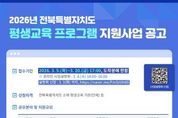 시민행정신문 강갑수 기자 | 전북특별자치도평생교육장학진흥원(원장 이현웅)은 도민의 지속적인 성장과 삶의 질 향상을 위해 '2026년 전북특별자치도 평생교육 프로그램 지원사업'공모를 실시하고, 참여할 도내 평생교육 기관·단체를 모집한다. 이번 사업은 아동·청소년, 청년·중장년, 노년 등 생애주기별 특성을 반영한 맞춤형 평생교육과 함께 취약계층 및 경계선지능인을 포함한 보편적 평생교육을 지원하는데 중점을 두고 있다. 이를 통해 교육격차를 완화하고, 도민 누구나 학습에 참여할 수 있는 기반을 강화할 계획이다. 공모분야는 총 5개이며, 도내 16개 기관 내외를 선정해 기관당 최대 1천만 원의 프로그램 운영비를 지원한다. 지원 규모는 심사를 통해 최종 확정된다. 사업설명회는 3월 4일 오후 2시, 온라인(ZOOM)으로 진행되며, 분야별 세부 내용과 사업계획서 작성 방법 등을 안내할 예정이다. 접수는 3월 5일부터 3월 20일 오후 5시까지이며, 신청을 희망하는 기관·단체는 행정안전부 전자문서 유통서비스(문서24)를 통해 서류를 제출하면 된다. 이현웅 원장은 “인구구조 변화와 사회환경 전환에 대응하기 위해 평