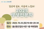 시민행정신문 강갑수 기자 | 울산 중구에서 운영하는 울산종갓집도서관이 오는 10월 25일 오후 7시 울산종갓집도서관 1층 야외정원에서 지역 주민과 함께하는 2025년 생생인문학 행사를 개최한다. 2025년 생생인문학 행사는 ‘일상에 쉼표, 마음에 느낌표’라는 주제로, 기존의 명사 초청 특강 형식에서 벗어나 동화 구연과 클래식 공연을 결합한 특별한 문화 프로그램 형태로 진행된다. 이번 행사에서는 『완벽한 아이 팔아요』, 『마음여행』, 『파닥파닥 해바라기』, 『오늘상회』,『작은 빛 하나가』 등 따뜻한 울림을 담은 다양한 그림책이 소개된다. 이와 함께 영화 삽입곡으로 잘 알려진 'Moon river', 'A whole new world'와 프랑스 대중가요 'Je te veux' 등 그림책의 내용과 어울리는 아름다운 피아노·바이올린·첼로 연주가 풍성하게 펼쳐진다. 이번 행사에는 지역 주민 누구나 참여 가능하다. 참여를 희망하는 주민은 울산 중구 통합도서관 누리집을 통해 신청하면 된다. 울산종갓집도서관 관계자는 “이번 행사가 아이들에게는 꿈과 상상력을 키우고 어른들에게는 동심을 떠올