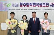 시민행정신문 강갑수 기자 | 청주시가 후원하고 (사)청주연극협회가 주최‧주관한 제3회 청주 창작희곡 공모전 시상식이 21일 임시청사 직지실에서 개최됐다. 이번 공모전은 한국 연극계의 새로운 목소리를 발굴하고 창작희곡의 활성화를 도모하기 위해 마련됐으며, 전국에서 다양한 소재와 형식을 담은 77편의 작품이 출품되는 등 뜨거운 관심을 모았다. 심사는 연출가, 극작가 등 연극 전문인으로 구성된 심사위원단이 맡아 작품의 완성도, 독창성, 실연성의 3개 항목에 대한 심사를 진행해 최종 3개의 작품을 선정했다. 최종 선정된 작품은 독창성이 높고 무대화의 가능성이 높다고 평가된 작품으로 대상(상금 1,500만원)은 이홍이 작가의 ‘모스크바의 바다’, 최우수상(상금 1,000만원)은 노동훈 작가의 ‘고민수의 변수 통제 시뮬레이션’, 우수상(상금 500만원)은 서준교 작가의 ‘다이치’에 영광이 돌아갔다. 수상작들은 저작권 계약을 맺고 청주 극단에 공연 제작 우선권을 지원하게 된다. 상을 수여한 이범석 청주시장은 “창작희곡은 한국 연극의 뿌리를 지탱하는 중요한 장르로, 이번 공모전을 통해 참신한 극작가들
