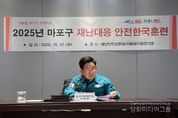 시민행정신문 강갑수 기자 | 마포구는 10월 21일 오후 2시, 재난안전상황실과 서울월드컵경기장 서문 일대에서 ‘2025년 재난대응 안전한국훈련’을 실시했다. 이번 훈련은 재난안전대책본부의 역할과 기능을 점검하고, 기관 간 공조체계를 강화해 재난 발생 시 신속하고 효과적으로 대응하기 위해 마련됐다. 본 훈련에 앞서 같은 날 오전 11시에는 대한적십자사봉사회 마포구협의회 주최로 ‘안전한국 훈련-구호급식 모의훈련’이 진행됐다. 재난, 화재, 수해 등으로 일상적인 식사 제공이 불가능한 상황을 대비해, 적십자사 회원 30여 명과 마포구, 마포소방서, 마포경찰서 등 유관기관 관계자들이 표준 구호식단(쌀밥, 참치김치찌개, 소불고기, 두부조림 등)을 배식하며 현장 대응 능력을 점검했다. 박강수 마포구청장은 현장을 찾아 직접 배식에 참여하고 봉사자들을 격려했다. 이후, 박 구청장은 지진으로 인한 건물 붕괴, 화재, 가스 폭발, 싱크홀 발생 등 복합재난 상황을 가정한 본 훈련에 참여했다. 오후 2시, 서울월드컵경기장 인근에서 규모 5.8의 지진이 발생했다는 가상 상황이 선포되자, 재난안전상