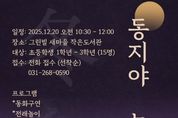 시민행정신문 기자 | 수원시 장안구 정자3동 그린빌새마을문고는 동지를 맞아 오는 20일 전통문화 등 다양한 프로그램을 체험할 수 있는 ‘동지야 놀자’ 행사를 개최한다고 밝혔다. 이번 행사는 오는 20일 오전 10시 30분부터 12시까지 도서관에서 진행되며, △동화구연 △작은음악회 △전래놀이 △팥죽나눔 등 다양한 프로그램이 마련됐다. 박혜경 그린빌새마을문고회장은 “이번 행사를 통해 우리 고유의 세시풍속을 자연스럽게 익히고 따뜻한 겨울 정을 느낄 수 있길 바란다”며 “앞으로도 지역 주민과 함께하는 작은도서관이 될 수 있도록 노력하겠다”고 말했다.