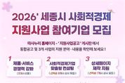 시민행정신문 강갑수 기자 | 세종일자리경제진흥원이 관내 사회적경제기업*의 지속가능한 성장과 자생력 강화를 위해 ‘2026년 세종시 사회적경제 지원사업’에 참여할 기업을 모집한다. * (예비)사회적기업, (예비)마을기업, (사회적)협동조합, 자활기업 이번 지원사업은 ▲ 제품·서비스 경쟁력 강화 사업▲ 성장단계별 맞춤형 컨설팅 ▲ 상세페이지 제작 지원 등 총 3개 분야로 추진된다. 먼저 제품·서비스 경쟁력 강화 사업은 기업이 직접 제안한 품질 개선 및 서비스 고도화 과제를 지원하며, 5개 기업을 선정해 총 4천만원 규모의 사업비를 지원한다. 성장단계별 맞춤형 컨설팅은 기업 운영 과정에서 발생하는 경영 현안 등의 해결을 위해 전문 컨설턴트 매칭을 지원하며, 8개 기업을 대상으로 기업당 최대 3회까지 컨설팅을 진행한다. 상세페이지 제작 지원 사업은 7개 기업을 선정하여 온라인 판매처에 게시할 제품 상세페이지의 제작을 지원한다. 이홍준 원장은 “사회적경제기업은 지역 경제 활성화와 일자리 창출에 중요한 역할을 한다”며 “이번 지원사업을 통해 기업들이 안정적으로 성장하고 경쟁력을 더욱