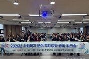 시민행정신문 기자 | 제주특별자치도는 지난 30일 제주도 복지이음마루 대강당에서 도와 행정시, 사회복지기관 및 시설, 출자·출연기관 관계자 100여 명이 참석한 가운데 ‘2026년 사회복지 분야 주요 정책 공유 워크숍’을 개최했다. 이번 워크숍은 2026년 새롭게 도입되거나 확대되는 복지 사업의 방향성을 현장과 공유하고, 실효성 있는 정책 추진을 위한 소통의 장으로 마련됐다. 행사는 근로자건강센터 윤원진 강사의 ‘직무 스트레스 관리’ 특강을 시작으로 부서별 정책 발표, 질의응답 및 건의사항 청취 순으로 진행됐다. 특히 2026년 새롭게 도입되거나 확대 시행되는 복지 사업을 중심으로 정책 방향을 공유하는 데 초점을 맞췄다. 우선, 올해부터 손주돌봄수당을 신설하고, 읍·면 지역 사회복지 생활시설 종사자 교통비, 다함께돌봄센터 아동 중식비, 어린이집 외국인 아동 보육료를 새롭게 지원한다. 3월 27일부터 장애인·노인을 우선 대상으로 의료·요양·생활을 통합 지원하는 지역 기반 통합돌봄 체계를 시행하며, 제주가치돌봄과 제주형 건강주치의 연계를 통해 지역 중심 돌봄을 추진한다. 제주