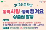 시민행정신문 강갑수 기자 | 동작구가 설 명절을 앞두고 지역경제 활성화와 구민 소비 부담 완화를 위해 ‘동작사랑상품권’과 ‘동작땡겨요상품권’을 발행한다고 밝혔다. 구는 2월 4일 오후5시부터 80억 원 규모의 동작사랑상품권을 5% 할인율로 발행한다. 이는 2026년 총 발행목표액 148억 원의 54%에 해당하는 액수로, 구는 고물가로 인한 경기 침체와 소비 위축을 완화하고자 발행목표액의 절반 이상을 설 명절 이전에 조기 공급하기로 했다. 동작사랑상품권은 1인당 월 구매한도 50만 원, 보유한도 150만 원으로 서울페이+앱을 통해 구매할 수 있다. 관내 가맹점 13,700여 개소에서 사용 가능하며, 사용기한은 구매일로부터 5년이다. 더불어 구는 올해부터 배달전용 상품권인 동작땡겨요상품권을 신규 도입해 2월 3일 오전10시부터 발행한다고 전했다. 배달앱 수수료로 인한 소상공인의 부담 경감을 위해 도입된 동작땡겨요상품권은 2026년 총 발행목표액 1억 원의 50%에 해당하는 5천만 원 규모로 발행되며, 15% 할인율을 적용해 소비자 혜택을 한층 강화했다. 또한 배달앱