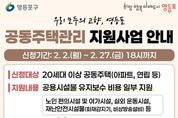 시민행정신문 강갑수 기자 | 영등포구가 공동주택 주민의 쾌적하고 안전한 생활여건 조성을 위해 ‘2026년 공동주택관리 지원사업’을 추진한다고 밝혔다. ‘2026년 공동주택관리 지원사업’은 관내 공동주택관리법의 적용을 받는 20세대 이상 공동주택을 대상으로 공용시설물의 유지관리에 필요한 사업비를 지원하는 사업이다. 구는 올해 총 9억 원의 예산을 투입해 관내 공동주택 단지별로 필요 사업비의 50~70% 이내, 최대 5,000만 원까지 지원할 계획이다. 지난해 구는 공동주택관리 지원사업으로 67개 단지에 83개 사업을 지원했다. 특히 위험수목 전지, 경로당 개보수, 어린이놀이시설 개보수 등을 통해 안전사고 예방은 물론 사회적 약자와 소외계층의 주거환경 개선에 기여했다. 올해는 지난해 대비 1억 원 확대된 예산을 바탕으로 입주민의 안전 확보와 함께 사회적 약자 및 소외계층을 지원한다. 주요 지원 분야는 ▲노인 편의시설 및 여가시설 설치·보수 ▲장애인 편의시설의 설치·개선 ▲공동주택 근로자 근무환경 개선(냉·난방기, 공기청정시설, 화장실·샤워실 개선 등) ▲보수‧보강이 필요한 공동주택 시설물 개선 사업 등이다. &nb