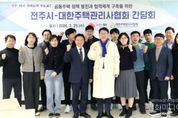 시민행정신문 강갑수 기자 | 전주시는 25일 공동주택 정책 발전과 민관 협력체계 구축을 위해 공동주택관리업무 전문기관인 대한주택관리사협회 전북도회와 간담회를 가졌다. 이번 간담회는 안전사고 사례 전파와 공동주택 관리종사자 처우 개선 등 공동주택 관리 현장에서 발생하는 다양한 문제를 공유하고, 시민의 주거 만족도 향상을 위한 실질적인 지원책을 모색하기 위해 마련된 자리다. 이날 간담회에는 우범기 전주시장과 안근용 회장을 비롯한 협회 관계자, 공동주택 관리 전문가 등이 참석해 현장의 애로사항과 제도 개선 필요 사항에 대해 폭넓은 의견을 나눴다. 간담회는 △공동주택 안전사고 사례 전파 및 안전 관리 강화 방안 △공동주택 관리종사자 권리보호 및 처우 개선 추진사항 공유 △700세대 이상 공동주택의 층간소음관리위원회 구성 의무화 제도 안내 △공동주택 관리주체와 입주자대표회의의 의무교육 이수 등 관련 정책 공유 △전주시 공동주택 관리비용 지원사업 안내 △현장 종사자 애로사항 청취 등의 순으로 진행됐다. 안근용 대한주택관리사협회 전북도회장은 “우리 협회는 공동주택 입주민과 관리업무 종사자의 권익을 보호하고,