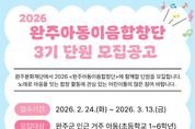 시민행정신문 강갑수 기자 | (재)완주문화재단은 오는 2월 24일부터'완주아동이음합창단'3기 단원 30명을 공개 모집한다고 밝혔다. '완주아동이음합창단'은 장애·비장애·다문화·학년이 함께 어우러지는 통합형 문화예술교육 프로그램으로, 정기연습과 지역 축제, 합창 경연대회 등 다양한 공연 활동을 통해 아동들이 서로를 이해하고 협력하며 공동체 의식을 키울 수 있는 기회를 제공한다. 모집 대상은 완주군 거주 아동(초등학교 1~6학년)으로, 접수 기간은 2월 24일부터 3월 13일까지이다. 정기 연습은 오는 3월부터 11월까지 매주 월요일 복합문화지구 누에 아트홀에서 진행되며, 11월에는 첫 정기 공연을 통해 활동 성과를 지역사회와 공유할 예정이다. 완주군은 아동·청소년 친화도시 조성에 관한 조례를 기반으로 모든 아동이 차별 없이 문화예술 활동에 참여할 수 있는 환경을 조성하고 있으며,'완주아동이음합창단'은 완주군과 전북특별자치도아동보호전문기관, 완주문화재단이 협력해 운영하고 있다. 2024년 창단 이후 완주 어린이날 행사, 완주아동권리영화제 등 다양한 지역 무대에 참여하며 안정적인 운영 기반