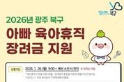 시민행정신문 강갑수 기자 | 광주광역시 북구가 육아휴직 중인 남성에게 최대 90만 원의 장려금을 지급한다. 25일 북구에 따르면 오는 26일부터 ‘2026년 아빠 육아휴직 장려금’ 신청이 시작된다. 이번 사업은 양육 친화 환경을 조성하고 휴직에 따른 경제적 부담을 완화하기 위해 지난해 북구가 광주에서 처음으로 시행한 육아 지원 정책이다. 올해는 5,400만 원의 예산을 투입해 60여 명에게 장려금을 제공할 계획이다. 지원 대상은 2025년 1월 1일 이후 육아휴직자 중 휴직 시작일 이후 1개월 이상 또는 종료 후 12개월이 지나지 않은 남성이다. 또한 고용보험법에 따른 육아휴직 급여 지급 대상이면서 신청일 기준 6개월 이상 북구에 주민등록을 두고 있어야 하고 아동도 북구 주민이어야 한다. 다만, 육아휴직급여 특례 적용 대상자(6+6육아휴직)는 특례 기간이 종료된 달의 다음 달부터 신청할 수 있다. 장려금 신청은 정부24를 통한 온라인 신청만 가능하고 오는 26일부터 예산 소진 시점까지 지원자를 선착순 모집한다. 최종 선발된 지원 대상자에게는 매월 30만 원씩 최