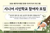 시민행정신문 기자 | 제주시 우당도서관은 2026 제주독서대전과 연계해 시민의 삶과 경험을 문학적 가치로 재발견하는 특별 프로그램인 ‘시니어 시인학교’ 참여자를 모집한다. 이번 시인학교는 ‘당신이 살아온 모든 순간이 이미 한 편의 시’라는 따뜻한 메시지를 바탕으로 기획됐다. 참여자들은 평생 쌓아온 소중한 삶의 궤적을 시 창작 활동으로 확장하며, 노년기 삶의 의미를 되새기고 지역 내 문학 향유 문화를 확산하는 주인공이 된다. 프로그램은 단순한 이론 수업을 넘어 시 쓰기부터 시화 그리기까지 단계별 창작 과정을 통해 자신만의 작품을 완성하는 전 과정을 경험하도록 구성됐다. 이를 통해 표현 역량을 강화함과 동시에 문학을 매개로 한 정서적 유대감도 형성할 수 있을 것으로 기대된다. ‘시니어 시인학교’는 4월 1일부터 5월 20일까지 매주 수요일 오전 10시 총 8회에 걸쳐 우당도서관 꿈오름강당에서 진행되며, 모집 대상은 60세 이상 시민 20명이다. 참가 신청은 3월 16일 오전 10시부터 제주특별자치도 공공도서관 누리집에서 선착순으로 접수하면 된다. 김봉석 우당도서관장은 “어르신들의 깊이 있