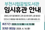시민행정신문 강갑수 기자 | 부천시립꿈빛도서관은 노후 엘리베이터 전면 교체 공사를 위해 3월 9일부터 4월 13일까지 임시휴관한다. 공사 과정에서 분진과 소음 발생이 불가피한 만큼 이용자 안전을 확보하고 시민 불편을 최소화하기 위해 전면 휴관 후 공사를 진행한다. 시는 휴관에 따른 이용자 불편을 최소화하기 위해 대체 서비스를 운영해 도서 이용 공백을 줄일 계획이다. 이에 따라 상호대차 및 예약도서대출 서비스는 3월 16일부터 4월 13일까지 평일 오전 9시부터 오후 6시까지 운영하며, 무인예약대출 서비스와 무인 반납함은 휴관 기간에도 정상 운영한다. 도서관 이용을 원하는 시민은 상동도서관, 책마루도서관, 상동역·신중동역 칙칙폭폭 작은도서관, 숲속작은도서관을 이용하면 된다. 부천시 꿈빛도서관 관계자는 “이번 엘리베이터 교체 공사는 시민 안전을 최우선으로 고려한 시설 개선 사업”이라며 “공사 기간 다소 불편이 있더라도 양해를 부탁드리며, 보다 안전하고 쾌적한 환경에서 도서관을 이용할 수 있도록 정비에 최선을 다하겠다”고 말했다. 부천시립꿈빛도서관은 공사를 차질 없이 마무리해 4월 14일부터 재개관하며,