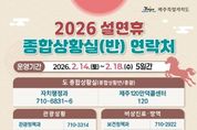 시민행정신문 강갑수 기자 | 제주특별자치도는 13일 진명기 행정부지사 주재로 ‘2026년 설연휴 종합대책 보고회’를 열고 ‘민생에 온기를, 안전에 안심을 더하는 설명절’을 주제로 분야별 세부 추진계획을 점검했다. 이날 보고회에는 정무부지사를 비롯해 안전건강실장, 특별자치행정국장, 행정시 부시장 등 상황반별 실국단장 20여 명을 포함한 130여명의 간부공무원이 참석했다. 제주도는 14일부터 18일까지 특별자치행정국장을 총괄로, 총 7개반 1,491명을 투입해 종합상황실을 운영한다. 도 7개반 366명, 제주시 7개반 625명, 서귀포시 9개반 500명이 참여하며, 하루 평균 298명이 현장에서 비상근무를 선다. 제주 120 만덕콜센터와 당직 근무자가 도민과 관광객 불편신고를 접수한다. 지난 10일 수립해 추진 중인 설연휴 종합대책은 ▲민생경제 안정 ▲도민안전 확보 ▲교통․관광 편의 ▲도민불편 해소 ▲나눔실천 등 5개 분야로 구성됐다. 물가안정 및 소비촉진을 위해 탐나는전 적립률 상향과 전통시장 온누리상품권 환급행사 등 소비지원 대책을 추진한다. 탐나는전 적립률을 2월 한 달간 20%로