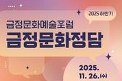 시민행정신문 기자 | 부산시 금정구 금정문화재단은 금정구 예술인과 함께 지역 문화예술의 현안을 공유하고 미래 발전 방향을 모색하기 위한 2025 하반기 금정문화예술포럼 '금정문화정담'을 오는 11월 26일 오후 6시 30분, 아르코공연연습센터@금정 대연습실에서 개최한다고 밝혔다. 상반기 포럼이‘동행: 금정예술가 정답게 주고받는 이야기’를 주제로 지역 문화환경의 변화 속에서 예술 생태계의 현황을 공유하고 네트워킹의 중요성을 강조했다면, 하반기 포럼은 한 해의 활동을 돌아보고 향후 재단과 예술인이 함께 만들어갈 협력과 실천의 방향을 구체화하는 자리가 될 예정이다. 특히 이번 포럼은‘금정구 거주예술인 모집’을 통해 약 100명의 지역 예술가가 참여할 예정이다. 포럼에서는 지역문화 진흥과 예술가 참여 확대를 위한 다양한 의견을 수렴하고, 예술 장르별 교류와 네트워킹을 통해 협력 기반을 강화하는 시간을 갖는다. 또한 참가 예술인에게는 소정의 참석비가 지급될 예정이다. 윤일현 금정문화재단 이사장은 “금정의 예술인들과 함께 만들어가는 포럼이 지역 문화의 밝은 내일을 여는 원동력이 되길 바라며, 예술가들의 생생