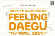 시민행정신문 강갑수 기자 | 대구광역시와 대구문예술진흥원관광본부는 문화체육관광부 ‘여행가는 가을’ 캠페인을 연계하여 10월 한 달간 대구를 방문하는 관광객 대상으로 스탬프투어 이벤트를 운영한다. 민족 대명절 추석을 맞아 고향을 찾는 귀성객과 가을 여행을 즐기는 국내 관광객들이 대구의 매력을 새롭게 발견할 수 있도록 이벤트를 마련했다. ‘여행가는 가을’은 문화체육관광부, 행정안전부, 농림축산식품부, 해양수산부 등 4개 부처와 관광업계가 협력하여 추진하는 범국민 여행 캠페인으로 교통, 숙박, 여행상품 할인과 다양한 프로그램을 통해 국내관광 수요를 촉진하는 대규모 프로젝트다. 진흥원 관광본부는 이번 캠페인에 발맞춰 대구관광 스탬프투어 이벤트를 통해 대구 여행을 독려한다. 10월 1일부터 31일까지 운영되며, 참여 방법은 스마트폰 앱 '스탬프 투어'를 다운로드 받고 관광지 47개소 중 4개소 스탬프를 획득하여 선물을 신청하면 된다. 구·군별 추천 관광지 및 대구문화예술진흥원 내 시설로 스탬프를 구성했다. 스탬프를 획득한 참가자에게는 추첨을 통해 다양한 경품이 지급된다.