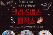 시민행정신문 강갑수 기자 | 광양중마도서관이 오는 12월 20일 오후 4시 어린이실에서 성탄 특집 공연 ‘크리스마스 매직쇼’를 개최한다. 공연을 맡은 ‘펀앤쇼’는 김정호 마술사가 이끄는 어린이 전문 공연팀으로, 지난 10여 년간 어린이대공원, 청주문화제, 삼성 어린이대축제 버블쇼 등 다양한 무대에서 5,000회 이상 공연하며 웃음과 감동을 전해왔다. 이번 공연에서는 크리스마스 분위기를 담은 테마 마술와 풍선을 활용한 색다른 매직 퍼포먼스가 펼쳐진다. 특히 공연팀이 직접 기획한 이야기형 구성으로 아이들의 흥미와 몰입도를 높이고, 어린이가 무대에 함께 참여하는 순서도 마련해 가족 모두에게 따뜻한 성탄의 추억을 선사할 예정이다. 관람 신청은 12월 8일 오전 10시부터 광양시립도서관 누리집에서 진행된다. 선착순 80명까지 신청할 수 있으며, 관람료는 무료다. 자세한 사항은 시립도서관 누리집을 확인하거나 중마도서관으로 문의하면 된다. 김현숙 도서관과장은 “아이들이 이번 공연을 통해 새로운 상상과 창의의 세계를 경험하고 마술의 원리를 탐구하는 재미를 느끼길 기대한다”며 “도서관을 찾