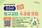 시민행정신문 기자 | 김포시가 시민의 평생학습 참여 기회를 확대하고 변화하는 사회 환경에 대응할 수 있는 역량 강화를 위해 ‘2026년 2기 평생교육 정규강좌’ 수강생을 모집한다고 밝혔다. 이번 교육은 평생학습관 57개 강좌(1,190명), 읍면동 가까이배움터 217개 강좌(3,931명) 등 총 274개 강좌, 5,121명 규모로 운영된다. 평생학습관은 자격증·인문교양·디지털 등 전문성과 체계성을 갖춘 심화과정 중심으로 운영되며, 가까이배움터는 시민참여 생활기술, 건강·힐링, 기초문해 등 생활 밀착형 프로그램을 중심으로 구성되어 시민 누구나 가까운 곳에서 쉽게 학습할 수 있도록 했다. 수강 신청은 김포시 평생교육 통합플랫폼을 통한 온라인 접수로 진행되며, 모든 강좌는 추첨제를 통해 수강생을 선발한다. 모집기간은 2026년 5월 12일부터 5월 20일 17:00까지 접수되며, 추첨은 5월 21일 진행된다. 이후 5월 22일부터 5월 26일까지 온라인 결제를 완료해야 수강이 확정된다. 수강료는 12주 기준 36,000원이며, 비대면 강좌와 기초문해 과정은 무료로 운영된다. 교육은 2026년 6월 1일부터 8월 29일까지 약