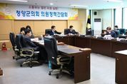 시민행정신문 기자 | 청양군의회는 10일 제318회 임시회를 앞두고 특별위원회 회의실에서 의원 및 부서장이 참석한 가운데 의원 정책간담회를 개최했다. 간담회 주요내용으로는 ▲청양군 지방재정투자심사위원회 구성 및 운영 조례안 ▲청양군가족센터 민간위탁 변경 동의(안) ▲한파대비 한파쉼터(경로당) 난방비 지원 성립전 예산 편성 ▲대치면 형산리 취약지역생활여건개조사업 농어촌공사 위탁 등 총 31건(조례 20건, 기타 11건)의 안건에 대하여 다양한 의견을 나누었다. 이번 간담회 의원발의 안건에 내용으로는 ▲청양군 염소산업 육성 및 지원에 관한 조례안(임상기 의원) ▲청양군 액화석유가스 저장설비 안전검사 비용 지원에 관한 조례안(임상기 의원) ▲청양군 의용소방재 지원에 관한 조례 전부개정 조례안(윤일묵 의원) ▲청양군 건강·장수센터 설치 및 운영 조례안(차미숙 의원 등 7인)이 논의됐다. 이날 간담회에서는 제9대 청양군의회의 마지막 정책간담회인 만큼 청양군 발전을 위한 주요 현안과 정책 방향에 대해 심도 있는 의견을 나누며 활발한 논의를 펼쳤다. 김기준 의장은 “다가오는 제318회 임시회가 제9대 청양군의