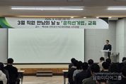 시민행정신문 강갑수 기자 | 진안군이 제9회 전국동시지방선거를 앞두고 공무원의 정치적 중립성과 공정성강화에 나섰다. 진안군은 6일 군청 강당에서 전 직원을 대상으로 공직선거법 교육을 진행했다. 백성하 진안군선거관리위원회 사무과장이 강사로 나선 이날 교육에는 군청 직원 200여 명이 참석했다. 강당을 찾지 못한 실과‧읍면 직원 300여 명은 청내 방송을 통해 교육을 시청했다. 이번 교육은 지방선거를 90여일 앞둔 시점에서 자칫 발생할 수 있는 위법 소지를 사전에 차단하고 공정한 선거 분위기를 만들기 위해 마련했다. 백성하 사무과장은 공무원의 선거 중립 의무와 공직선거법상 제한‧금지 규정 등을 실제 사례와 함께 설명했다. 특히 최근 빈번하게 발생하는 SNS 활동 위반 사례를 중심으로 공무원들이 주의해야 할 구체적인 사례를 안내하고, 질의응답을 통해 직원들의 궁금증을 해소하는 시간을 가졌다. 진안군 관계자는 “공무원은 선거에 개입하거나 오해를 살 수 있는 행동을 절대 해서는 안된다”며 “교육과 지속적인 공직선거법 안내를 통해 전 직원이 경각심을 갖고 업무에 임할 수