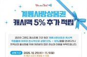 시민행정신문 강갑수 기자 | 계룡시는 코리아 그랜드 페스티벌 기간 동안 지역 내 소비 활성화를 위해 모바일 계룡사랑상품권 사용 시 캐시백 적립률을 한시적으로 5% 추가하여 13%에서 18%로 상향한다고 밝혔다. 이번 혜택은 국가단위 할인행사인 ‘코리아 그랜드 페스티벌’ 기간에 맞춰 침체된 지역상권에 활력을 불어넣고, 시민들에게 실질적인 소비 혜택을 제공하기 위한 것으로 10월 29일부터 11월 9일까지 12일간 시행된다. 단, 예산 소진 시 5% 추가 적립은 조기 종료될 수 있다. 모바일 계룡사랑상품권은 행사 기간 동안 18% 캐시백이 적용되며, 종료 후 올해 말까지는 13% 적립률이 유지되고 구매 한도는 월 50만 원, 보유 한도는 100만 원이다. 상품권은 구글 플레이스토어 또는 앱스토어에서 ‘지역상품권 chak’ 앱을 설치한 뒤 회원가입을 통해 간편하게 구매할 수 있다. 시는 이번 캐시백 확대를 통해 시민들의 소비 참여를 유도하고, 소상공인과 영세상권의 매출 증대에 도움이 될 것으로 기대하고 있다. 이응우 계룡시장은 “코리아 그랜드 페스티벌과 연계한 이번 캐시백 혜택이