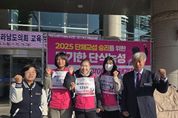 시민행정신문 강갑수 기자 | 전라남도의회 박형대 의원(진보당·장흥1)은 11월 5일 전라남도교육청 앞을 찾아 학교비정규직 단체교섭 조속 타결을 요구하며 13일째 노숙 단식농성을 이어가고 있는 노동조합 간부들을 위로했다. 전남학교비정규직연대회의와 전라남도교육청은 2024년 3월 본교섭을 시작으로 2년째 121차에 이르는 단체교섭을 진행했으나, 여전히 합의점을 찾지 못한 채 난항을 겪고 있다. 노동조합은 단체교섭을 통해 정규직과 비정규직 간 복무·복지 차별 해소를 요구하고 있으나, 도교육청은 예산 등의 이유로 대부분 수용이 어렵다는 입장을 고수하고 있다. 주요 쟁점은 ▲공무원 65일에 비해 공무직은 15일로 제한된 장기재직휴가, ▲공무원 최대 165만 원에 비해 공무직은 65만원 수준인 맞춤형복지비, ▲유급병가일수 60일 대 30일의 격차, ▲예산 소요가 없음에도 불구하고 불허된 방학 중 직무연수 등이다. 전국학교비정규직노조 전남지부 황호순 지부장은 “단체교섭 타결을 촉구하며 단식 13일차에 돌입했으나, 교육감이 직접 해결의지를 보이지 않고 있다”며 “원한만 해결이 어려울 시 14일 총파업에 나설 수밖