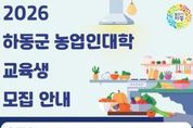 시민행정신문 강갑수 기자 | 하동군은 농산물 가공 및 창업을 희망하는 군민을 대상으로 전문 인력을 육성하기 위해 ‘2026년 하동군농업인대학’ 교육생을 오는 2월 25일까지 모집한다고 밝혔다. 올해 개설 과정은 ‘농산물 가공창업 과정’으로, 40명 이내의 교육생을 선발한다. 교육은 3월부터 9월까지 매주 화요일 총 20회(80시간) 동안 하동군농업기술센터에서 진행될 예정이다. 주요 교육 내용은 △농산물 가공 방식의 이해 △가공 장비 활용 시제품 제작 실습(4회) △AI활용 온라인 마케팅 △별천지 하동쇼핑몰 입점 및 운영 등 실제 창업과 판로 개척에 즉시 적용할 수 있는 실무 중심으로 구성됐다. 군은 교육 수료생들이 실제 창업으로 이어질 수 있도록 사후관리에도 힘쓸 계획이다. 전체 교육과정의 75% 이상을 이수한 졸업자에게는 관련 보조사업 선정 시 가산점을 부여, 요건을 갖춘 농업인은 농산물가공지원센터를 활용해 창업할 수 있도록 지원할 방침이다. 수강 희망자는 오는 2월 25일까지 읍·면사무소 또는 농업기술센터를 방문하거나 우편, 이메일로 신청할 수 있다. 하동