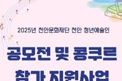 시민행정신문 강갑수 기자 | 천안문화재단은 내달 3~ 5일까지 ‘천안 청년예술인 공모전 및 콩쿠르 참가 지원사업’ 참여자를 모집한다고 15일 밝혔다. 재단은 청년예술인의 문화예술 활동 영역을 확장하고 지원하기 위해 올해부터 공모전과 콩쿠르 참가 활동비 지원사업을 추진하게 됐다. 지원 대상은 천안시에 거주하거나 천안시 소재의 대학교 예술학과 재학 또는 졸업한 만 19세 이상 만 39세 이하의 청년예술인으로, 3년 이상 예술활동 실적이 있으면 신청할 수 있다. 신청은 재단 누리집에서 신청서를 내려받아 작성 후 증빙 서류와 함께 전자우편으로 제출하면 된다. 선정 결과는 심의를 거쳐 내달 19일 재단 누리집에 공지할 예정이다. 자세한 사항은 재단 누리집을 참고하거나 전화로 문의하면 된다.