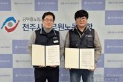 시민행정신문 강갑수 기자 | 대한민국 노동운동의 합리적 변화를 선도하는 전주시와 안동시의 공무원 노동조합이 영·호남의 경계를 넘어 강력한 ‘실용주의 연대’를 선포했다. 전주시공무원노동조합(위원장 김경오)은 지난달 30일 전주시청 내 노동조합 사무실에서 안동시공무원노동조합(위원장 유철환)과 자매결연 협약식을 가졌다고 밝혔다. 이번 협약은 양 노조가 과거 투쟁 중심의 노선에서 탈피하여, 한국노총 공무원연맹이라는 새로운 플랫폼을 통해 ‘조합원 실익 중심의 노동운동’을 실현하고자 하는 공통의 목표 아래 추진됐다. 특히 이번 만남은 두 조직이 걸어온 서로 다른 ‘혁신의 경로’가 하나로 합쳐졌다는 점에서 의미가 깊다. 전주시 노조는 지난 2021년, 독자적인 노조를 신설하는 도전적인 길을 선택한 이후, 오직 조합원의 권익과 실익에 집중하는 행보를 통해 단기간에 1,560명이라는 조합원을 둔 제1노동조합로 성장하는 저력을 보여주었다. 반면, 안동시 노조는 최근 전체 조합원 투표를 통해 기존 상급단체 탈퇴 안건을 성공적으로 가결하며, 조직 전체의 체질을 실용주의 노선으로 전환하는 ‘민주적 혁신’의 모범 사례를 만들어냈다. 협약식에서