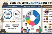 시민행정신문 강갑수 기자 | 경주시는 고향사랑기부제 참여가 올해도 꾸준히 이어지면서 모금 역시 안정세를 보이고 있다고 20일 밝혔다. 시에 따르면 올해 들어 4월 8일까지 고향사랑기부제 모금액은 1억 2,020만 4,000원이며, 기부건수는 819건으로 집계됐다. 연간 목표액 5억원 대비 24% 수준이다. 지역별로는 전북도가 361건(44.1%)으로 가장 많았고, 이어 경북도 127건(15.5%), 서울시 73건(8.9%), 경기도 61건(7.4%), 대구시 45건(5.5%) 순으로 나타났다. 기타 지역은 152건(18.6%)이다. 고액 기부도 꾸준히 늘고 있다. 올해 들어 지산그룹 한주식 회장과 신경북안전컨설팅 전정숭 대표가 각각 2,000만원을 기부했다. 답례품 신청은 총 862건으로 집계됐으며, 경주페이 192건(22.3%)이 가장 많았다. 이어 삼겹살(목살) 149건(17.3%), 찰보리빵 65건(7.5%), 한우국거리 62건(7.2%), 경주빵 48건(5.6%) 순으로 나타났다. 시는 기부 참여 확대를 위해 답례품 경쟁력 강화에 나서 올해 5개 품목을