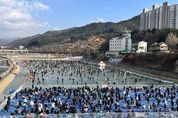 시민행정신문 강갑수 기자 | 홍천군은 제14회 홍천강 꽁꽁축제가 1월 9일 개막한 가운데, 개막식 당일부터 주말인 11일까지 3일간 총 5만 8,327여 명이 축제장에 입장했다고 밝혔다. 개막 첫날인 9일 하루에만 1만 3,216명이 입장했으며, 토요일인 10일에는 2만 4,386명, 일요일인 11일에는 2만 725명이 축제장을 찾았다. 특히, 주말 기간 얼음, 부교 낚시터 입장권이 연일 조기 소진되며, 10일에는 얼음 낚시터 오후 권이 판매 시작 1시간 만에 매진되는 등 입장 수요가 집중됐다. 이번 축제의 중심 콘텐츠는 홍천 인삼 송어다. 홍천 인삼 송어는 6년근 인삼을 배합한 사료로 사육한 홍천 지역 특화 수산물로, 얼음낚시 체험과 회센터 이용이 연계되며 입장객 증가를 이끄는 핵심 요인으로 작용하고 있다. 홍천군은 올해 얼음 및 부교 낚시터 입장권 가격을 기존 2만 원에서 1만 5,000원으로 인하해 접근성을 높였다. 모든 입장권은 현장 판매로 운영되며, 오전 권과 오후 권으로 나눠 입장을 관리하고 있다. 퇴장 인원이 발생할 경우 해당 인원만큼 추가 입장을