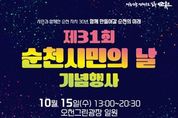 시민행정신문 강갑수 기자 | ‘더 큰 미래를 위한 삶의 쉼터, 치유도시 순천!’ 그 새로운 도약을 위한 순천시(시장 노관규)가 오는 15일 오천그린광장 일원에서 24개 읍면동 화합행사와 함께 ‘제31회 순천시민의 날’기념식을 개최한다. 이번 행사는 오후 1시부터 밤 8시 30분까지 28만 순천시민이 하나되어 글로벌 문화산업, 삶이 머무는 치유도시 메카로 발돋움한 일류 순천의 자부심을 높이는 장으로 어울한마당 큰 잔치가 성대하게 펼쳐진다. 이날 펼쳐지는 제31회 순천시민의 날 행사는 지역사회의 화합과 단결을 다짐하고, 순천의 발전을 기념하는 의미있는 시간으로 1부 행사와 2부 행사로 나눠 진행된다. 1부 행사는 오천그린광장 주차장 일원에서 오후 1시부터 오후 5시까지 ▲24개 읍면동 화합을 위한 장기자랑 ▲어린이 한마당 잔치 ▲버블매직쇼 ▲울려라! 도전 순천역사골든벨 ▲읍면동 먹거리부스 ▲순천하세요!(김수련, 양서영, 하숙자 가수의 공연) ▲체험부스 ▲푸짐한 경품 등이 마련돼 가족 단위 방문객에게 인기가 높을 것으로 기대된다. 특히 시민들이 함께 즐길 수 있는 ‘먹거리 부스’에서는 24개 읍면동이 참