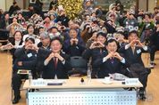 시민행정신문 강갑수 기자 | 김천시청 가톨릭 신우회는 11월 28일 김천시청 1층 로비에서 2025년 김천시청 성탄트리 점등식을 개최하여 따뜻하고 화합된 연말 분위기를 조성했다. 이날 행사에는 김천시청 가톨릭 신우회 회원을 비롯해 배낙호 김천시장, 김천시청 기독 신우회 회원 등이 참석했으며, 가톨릭 신우회 지도신부인 강영목 신부(대신성당 주임)도 참석하여 성탄의 기쁨을 함께 나누었다. 김천시청 청사의 성탄트리는 가톨릭 신우회와 기독 신우회 소속 직원들이 해마다 번갈아 설치해 왔으며, 이번 해에는 가톨릭 신우회에서 준비를 맡아 정성스럽게 꾸몄다. 배낙호 시장은 “성탄트리의 따스한 빛이 김천시청을 찾는 모든 방문객과 직원 여러분께 전해지기를 기원한다.”라며, “김천시민과 직원 여러분 모두 따뜻하고 행복한 연말을 보내시기 바란다.”라고 전했다. 청사 내 성탄트리는 누구나 관람할 수 있도록 개방되어 있으며, 김천시청 방문객 및 직원들이 희망과 평온을 느낄 수 있는 작은 쉼터로서 역할을 할 예정이다.
