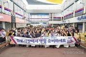 시민행정신문 강갑수 기자 | 홍천군은 다가오는 추석 명절을 맞아 침체된 전통시장에 활력을 불어넣고, 소상공인의 소득 증진과 소비 촉진을 위해 ‘추석맞이 전통시장 장보기 행사’를 개최했다. 이번 행사는 9월 19일부터 10월 2일 명절 전까지 홍천시장과 홍천중앙시장에서 국별, 부서별로 장보기, 민생회복 소비쿠폰 소비, 각자 내기 오찬을 진행한다. 본행사는 9월 30일 오전 11시부터 홍천시장 광장(공유주방 앞)에서 진행됐는데, 행사에는 홍천군수, 공무원, 유관기관과 사회단체 등 100여 명이 참여하여 명절맞이 농산물과 전, 떡 등을 구매하여 추석 차례상 준비에 대비했다. 장보기 외에도 홍천사랑상품권, 온누리상품권, 강원상품권 및 민생회복 소비쿠폰 사용 촉진 캠페인도 진행했다. 장보기 이후 참석자들은 전통시장과 주변 소상공인 식당·착한가격업소에서 ‘각자 내기 오찬’을 하며 지역 상권에 실질적 도움이 되도록 삼삼오오 식당을 이용하여 상인들의 주머니를 채웠다. 신영재 홍천군수는 “추석을 맞아 전통시장에서 장을 보며 상인들에게 도움이 될 수 있는 행사를 마련했다”라며, “이번 행사가 민생회복 소