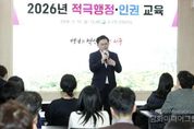 시민행정신문 강갑수 기자 | 대전 서구는 구청 장태산실에서 전 직원을 대상으로 ‘적극행정·인권 통합교육’을 실시했다고 11일 밝혔다. 이번 교육은 변화하는 행정 환경 속에서 공직자의 능동적 판단력과 업무에 대한 책임감을 기르고, 행정 전반에 요구되는 인권 감수성을 높이기 위해 마련됐다. 정승호 강사가 진행한 교육은 △적극행정의 이해와 실천 △인권 침해 대응 △공직사회에서 인권의 중요성 등의 내용으로 진행됐다. 구는 이번 교육을 통해 적극행정의 취지와 기준을 재점검하고 인권 침해에 대한 인지 및 대응 역량을 높여, 구민이 체감할 수 있는 행정 서비스로 이어지도록 한다는 방침이다. 구 관계자는 “적극행정은 주민의 삶에 실질적인 변화를 만들어내는 원동력이며, 인권은 모든 행정의 기준이자 원칙”이라며 “이번 교육이 공직자 각자의 업무에서 실천으로 이어져 구민 신뢰를 높이는 계기가 되길 바란다”고 말했다.