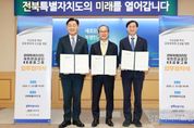 시민행정신문 이세훈 기자 | 전북특별자치도가 국내 금융중심지 선두로 도약하는 서막이 열렸다. 도는 23일 도청에서 김관영 전북자치도지사, 김성주 국민연금공단 이사장, 양종희 KB금융그룹 회장이 참석한 가운데 ‘자산운용 특화 금융생태계 조성 및 지역경제 활성화’를 위한 3자 업무협약을 체결했다. 이날 협약은 지난 1월 KB금융그룹이 발표한 전북혁신도시 내 ‘KB금융타운’ 조성 계획의 실질적 후속 조치로, 민·관·공이 원팀을 이뤄 전북을 글로벌 자산운용 거점으로 키우고 지역 경제의 자생적 성장 동력을 확보하기 위해 마련됐다. ■금융거점 조성부터 기후테크 펀드까지…전방위 협력 전북자치도·국민연금공단·KB금융그룹은 전북혁신도시 내 ‘KB금융타운’ 조성을 위해 역할을 나눠 맡는다. 도는 행정적 지원을 전담하고, 국민연금공단은 민간 금융기관과의 자산운용 협력체계를 강화해 전북 특색의 금융 생태계 구축을 위한 마중물 역할을 담당한다. KB금융그룹은 KB증권·KB자산운용 등 핵심 계열사 기능을 집결시키며, 지난달 발표한 250명 규모에서 늘어난 약 380명이 전북혁신도시에 근무할 예정이다. 여기에 전북혁신도시 외 전주 지역