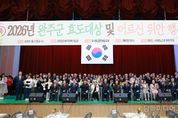 시민행정신문 강갑수 기자 | 효사랑실천전북협의회가 주관한 ‘2026년 완주군 효도대상 및 어르신 위안행사’가 27일 500여 명이 참석한 가운데 완주군 문화체육센터에서 성료됐다. 이날 행사는 경로효친 사상을 계승하고 어르신들의 헌신과 공로를 기리기 위한 뜻깊은 자리로, 가족과 이웃을 위해 모범적인 효행을 실천한 주민들에게 다양한 표창이 수여됐다. 올해 시상식에는 ▲효행상 13명 ▲장한 아버지상 13명 ▲장한 어머니상 13명 ▲노인복지봉사상 1명 ▲복지업무 유공자 8명 ▲완주경찰서장 표창 2명 ▲완주소방서장 표창 2명 ▲완주교육지원청 교육장 표창 3명 ▲대한노인회 전북특별자치도연합회장 표창 3명 ▲대한노인회 완주군지회장 표창 2명 ▲효사랑실천전북협의회 표창 13명 ▲전북연합신문사 표창 3명 등 총 76명이 각계 기관장들의 표창을 받았다. 또한, 지역사회의 미래를 이끌어갈 인재 양성을 위해 금성장례식장(대표 성은순)과 봉동읍 사천향(대표 김영진)에서는 학업에 정진하는 초중고 학생 8명에게 장학금을 전달해 훈훈함을 더했다. 이날 식전공연에는 평양예술단의 흥겨운 민요, 무용, 가요 등으로 흥을 돋우었고,