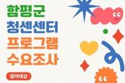 시민행정신문 강갑수 기자 | 전남 함평군이 청년들의 실질적인 수요를 반영한 청년센터 프로그램 운영을 위해 사전 수요조사에 나선다. 군은 “이달 8일부터 18일까지 11일간 지역 청년을 대상으로 ‘2026년 청년센터 프로그램’ 수요조사를 실시한다”고 7일 밝혔다. 수요조사는 총 11개 문항으로 구성된 설문을 통해 청년층이 실제 원하는 교육이나 취미·교양 프로그램을 파악한다. 결과는 올해 상반기 청년센터 프로그램 운영 기초자료로 활용할 예정이다. 함평군에 거주하는 19세부터 49세 이하의 청년은 누구나 각 읍·면사무소 방문 또는 온라인으로 참여할 수 있다. 군 관계자는 “이번 설문조사는 청년들의 실제 삶에 도움이 되는 프로그램 운영을 위한 것”이라며 “질 높은 프로그램 운영을 위해 많은 참여를 바란다”고 전했다. 한편, 지난해 12월 정식 개소한 함평군 청년센터는 나비어울림센터 3층(함평읍 중앙길 164)에 있으며, 내부는 교육실과 열람실, 컴퓨터 교육실과 공유 카페 등으로 조성됐다.