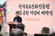 시민행정신문 기자 | 논산시는 26일 노성면에 위치한 한국유교문화진흥원에서 ‘기념비 제막식’을 개최했다. 제막식에는 조관행 노성면 어르신회장을 비롯해 백성현 논산시장, 조용훈 논산시의회의장 및 시 의원, 관내 유관기관과 단체 관계자 등 200여 명이 참석했다. 백성현 논산시장은 “이 세상은 누군가의 희생과 헌신의 씨앗으로 피어나는 꽃과 같다”며 “민족의 얼을 길이 보전하기 위해 큰 결심을 해 주신 종중 어르신들께 깊은 감사의 인사를 드린다”고 말했다. 이어 “전 세계적으로 유학에 대한 관심이 높아지고 있는 만큼, 한국유교문화진흥원은 논산의 뿌리깊은 유교 문화와 정신을 널리 전파하는 중심 역할을 하게 될 것”이라며 “문화, 경제, 농업, 국방 등 모든 분야에서 논산의 가치를 높이기 위해 실천하는 행정을 펼쳐 나가겠다”고 말했다. 지난 2022년 개관한 한국유교문화진흥원은 한국유교문화와 충청지역 국학의 대표적인 연구기관이다. 건립 과정에서 파평윤씨노성대종중은 약 2만 평의 토지를 기부하며 논산이 지닌 유교적 가치와 정신을 후대에 온전히 계승하고 지역 문화의 뿌리를 굳건히 세울 수 있도록 하는 데 기여