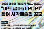 시민행정신문 강갑수 기자 | 경기도와 경기문화재단이 “2026 예술인 기회소득 확산사업(전시)“의 일환으로 진행하는 “아트 팝(Art POP)” 참여 시각예술인을 공개 모집한다. ‘2026 예술인 기회소득 확산사업(전시)’은 2023년부터 2025년까지 '경기도 예술인 기회소득'을 지원받은 시각예술인에게 지속적인 예술 창작 발표의 기회를 제공하고, 도민에게는 문화예술 향유 기회를 확대하기 위해 마련된 행사다. “아트 팝”의 신청 대상은 2023년부터 2025년까지 '경기도 예술인 기회소득'을 지원받은 시각예술 분야의 경기도 거주 예술인이다. 3년 동안 1회라도 지원을 받았다면 신청할 수 있고, 기존 “예술인 기회소득 페스티벌(전시)”에 참여한 이력이 있어도 신청 가능하다. 신청을 원하는 예술인은 국가문화예술지원시스템(NCAS)을 통해 지원신청서, 예술인 기회소득 지급 사실 증빙 자료 등을 제출하면 된다. 특히 이번 “아트 팝”에는 회화, 조각, 공예, 설치, 미디어, 일러스트, 웹툰, 그래피티 아트, 디지털 페인팅 등 모집 분야를 확대해 보다 다양한 시각예술 분야의 예술인들이 참여할 수 있도록 했다