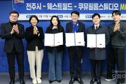 시민행정신문 강갑수 기자 | 대한민국 대표 영화도시인 전주시가 글로벌 영화영상산업 수도로 도약하기 위해 세계적인 영상 제작 인프라를 보유한 국내·외 기업들과 손을 맞잡았다. 시와 웨스트월드(대표 손승현), 쿠뮤필름스튜디오는 19일 시청 3층 소회의실에서 우범기 전주시장과 손승현 웨스트월드 대표, 양수연 쿠뮤필름스튜디오 본부장 등이 참석한 가운데 ‘전주시 영화영상산업 발전 및 투자를 위한 양해각서(MOU)’를 체결했다. 이번 협약은 시가 추진 중인 ‘글로벌 영화영상산업 수도’ 조성의 핵심 거점을 마련하고, 국내외 유수 기업의 기술력과 네트워크를 전주에 이식하기 위해 추진됐다. 이 자리에서 3개 기관은 △쿠뮤필름스튜디오 전주시 투자 확정 △웨스트월드 전주 지사 설립 △영화·영상 등 콘텐츠 기업에 대한 투자 활성화에 적극 협력하기로 약속했다. 협약에 참여한 웨스트월드는 ‘오징어 게임’, ‘좀비딸’, ‘다 이루어질 지니’와 같은 글로벌 히트작의 시각효과(VFX) 제작에 참여한 국내 최고의 기술력을 보유한 기업이다. 이 기업은 특히 넷플릭스와 기술 파트너십을 체결할 만큼 독보적인 비주얼 퀄리티를 자랑한다.