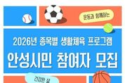 시민행정신문 강갑수 기자 | 안성시는 시민 누구나 일상에서 부담 없이 운동을 즐길 수 있도록 ‘2026 종목별 생활체육 프로그램’을 운영하고, 4월부터 참가자를 모집 중이라고 밝혔다. 이번 프로그램은 오는 7월까지 안성시 관내 종목별 체육시설에서 진행된다. 육상, 수영, 배드민턴 등 총 30개 종목이 마련되어 있어 시민들은 자신의 관심사와 체력 수준에 맞는 운동을 자유롭게 선택할 수 있다. 특히 참가비가 전액 무료로 운영되어 경제적 부담 없이 참여할 수 있는 점이 큰 장점이다. 운동을 처음 시작하는 입문자도 쉽게 적응할 수 있도록 기초 실무 위주로 구성됐으며, 다만 일부 종목에 한해 장비 대여 등 최소한의 자부담 비용이 발생할 수 있다. 참여 대상은 운동에 관심 있는 안성시민 누구나 연령과 경험에 관계없이 신청 가능하다. 모집은 종목별 정원에 따라 선착순으로 진행되며, 종목별 담당자에게 직접 문의하거나 안성시체육회 안내를 통해 신청하면 된다. 안성시 관계자는 “생활체육은 건강한 삶을 유지하기 위한 가장 쉽고 확실한 방법”이라며, “이번 프로그램을 통해 많은 시민이 일상 속에서 운동의 즐거움을 찾고