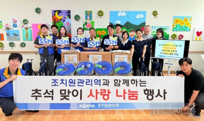 시민행정신문 기자 | 19일 한국철도 대전충남본부 조치원관리역은 세종특별자치시사회복지협의회와 함께 민족 고유의 명절인 추석을 앞두고 세종시 조치원읍에 위치한 세종천애안요양원을 방문하여 따뜻한 사회공헌을 실천했다.