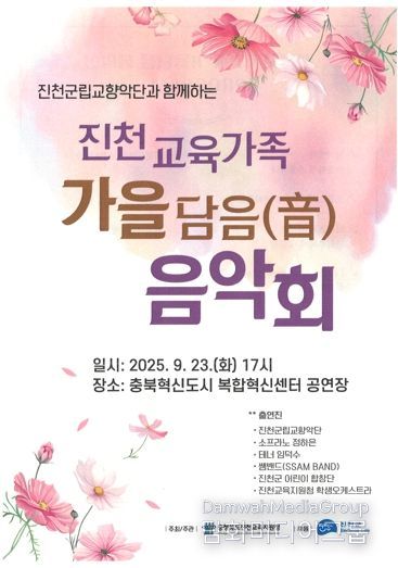 시민행정신문 기자 | 충청북도진천교육지원청은 오는 9월 23일 17시,충북혁신도시 복합혁신센터에서 '2025. 진천교육가족 가을담음(音) 음악회'를 개최한다.