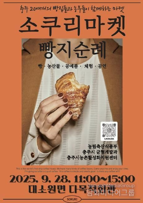 시민행정신문 기자 | 충주시농촌활성화지원센터는 오는 9월 28일 오전 11시부터 오후 3시까지 대소원면 다목적회관 광장에서 두 번째 ‘소쿠리마켓 빵지순례’를 개최한다고 밝혔다.
