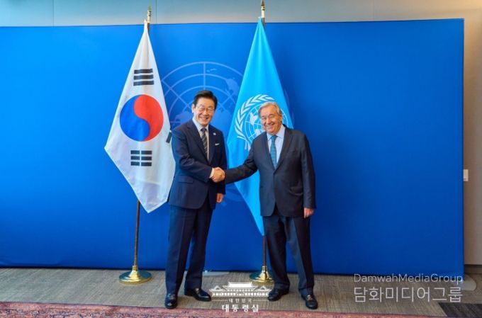 먼저, 이 대통령은 23일(현지시간) 구테레쉬 사무총장을 만나 한반도 평화를 위한 우리 측 구상을 설명하며 유엔의 적극적인 지원을 당부했다. 구테레쉬 사무총장과는 지난 6월 G7(주요7개국) 정상회의에서 환담을 나눈 이후 두 번째 만남이다.