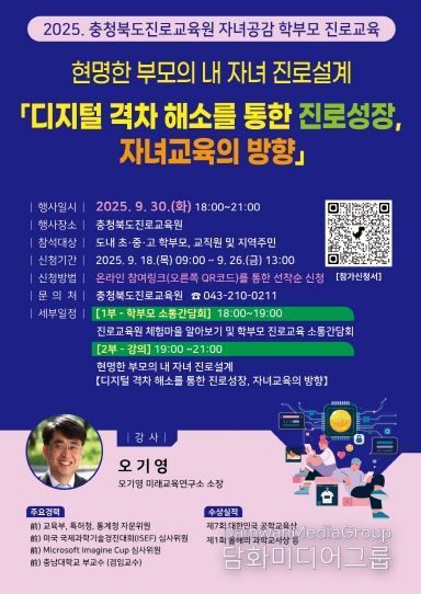 시민행정신문 기자 | 충청북도교육청 직속기관 진로교육원은 오는 30일 18시에 학부모들이 변화하는 미래사회에 맞춰 자녀의 진로설계 역량을 강화할 수 있도록 2025 하반기 학부모 진로교육을 운영한다고 밝혔다.