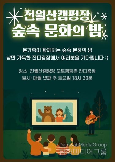 '숲속 문화의 밤'은 매월 넷째 주 토요일 전월산캠핑장 잔디광장에서 진행되며, 캠핑장을 이용하는 이용객이라면 누구나 부담없이 즐길 수 있는 행사를 운영한다. 특히 9월 첫 회차에는 지역 예술인 공연이 함께 마련되어 이용객들에게 특별한 가을밤의 추억을 선사할 예정이다.
