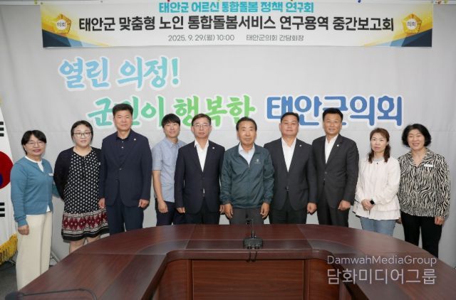 시민행정신문 기자 | 태안군의회 의원연구단체 ‘태안군 어르신 통합돌봄 정책 연구회’는 9월 29일 오전 10시, 태안군의회 간담회장에서 '태안군 맞춤형 노인 통합돌봄서비스 정책 연구' 중간보고회를 개최했다.