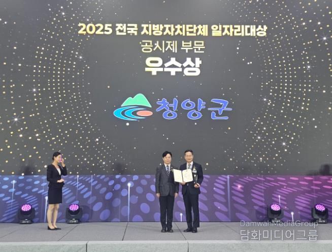 시민행정신문 강갑수 기자 | 청양군은 지난 30일 청주오스코 2층 그랜드볼룸에서 열린 고용노동부 주관 ‘2025 전국 지방자치단체 일자리대상’ 공시제 부문에서 우수상을 수상했다고 밝혔다.