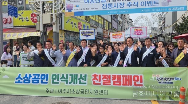 시민행정신문 강갑수 기자 | 여주시는 여주시소상공인지원센터 주관으로 2025년 추석 명절을 앞두고 물가안정과 지역경제 활성화를 위한 '추석 명절 맞이 소상공인 친절 캠페인'을 여주5일 장날인 9월 30일에 실시했다. 이번 행사는 한글시장과 세종시장에서 진행됐으며, 시민들과 상인들로부터 큰 호응을 얻었다.